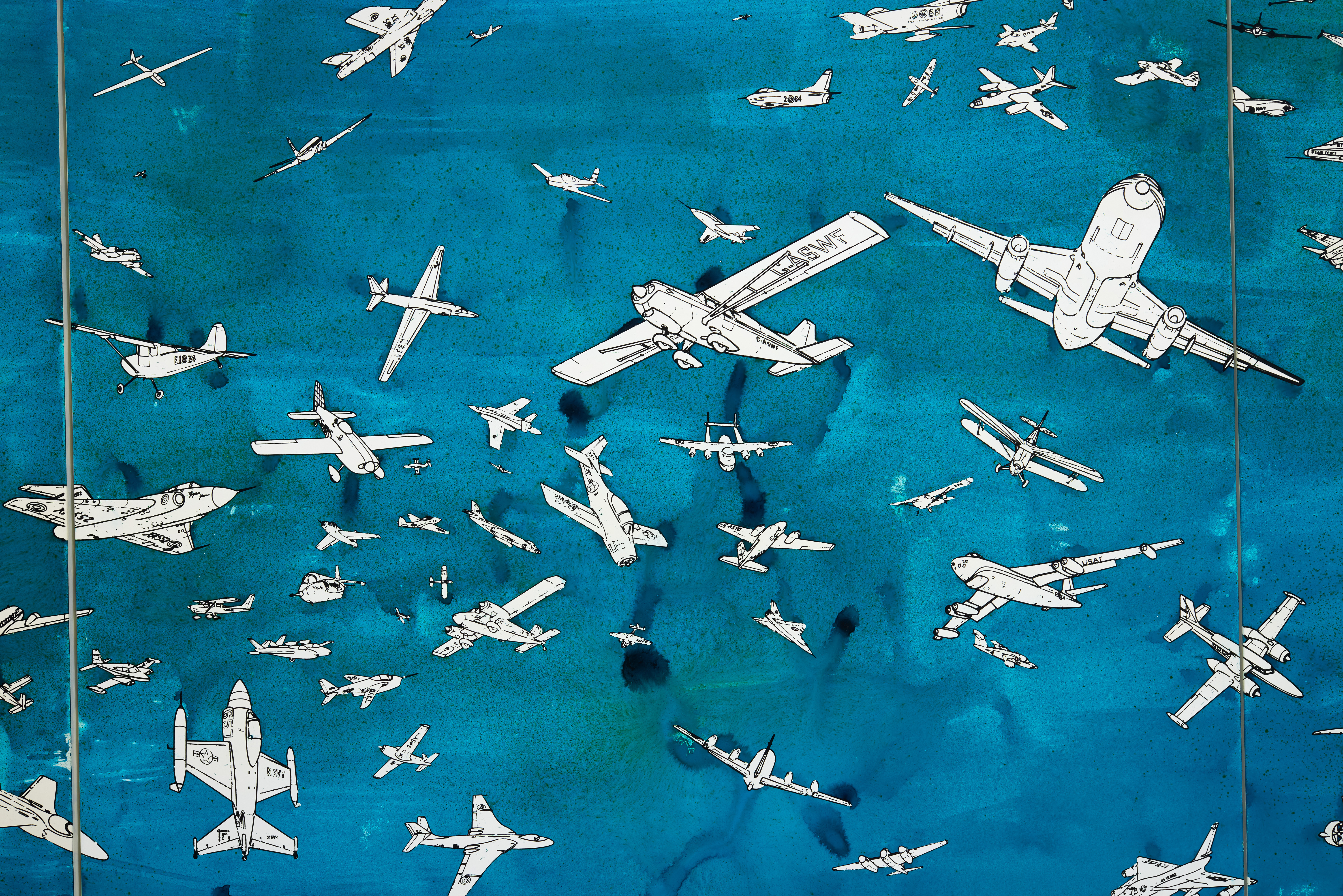 The latter sections of the exhibition focus on the Aerei (from 1977-), Calendari (1974-, and the serial, conceptually rigorous works on paper produced during the 1980s and early 1990s. In the Aerei, permutational structures generate disorienting fields in which images of flight are subjected to systems that are at once methodical and unstable, allowing order and chaos to collide within a rational, classified framework. The steady accumulation of dates in the Calendari, alongside the repeated deployment of graphic elements across his works on paper, similarly registers time as both measure and material. Taken together, these series articulate an ongoing process in which systems are set in motion only to expose their own limits, staging a sustained, often playful exchange between control and contingency.