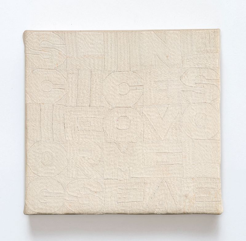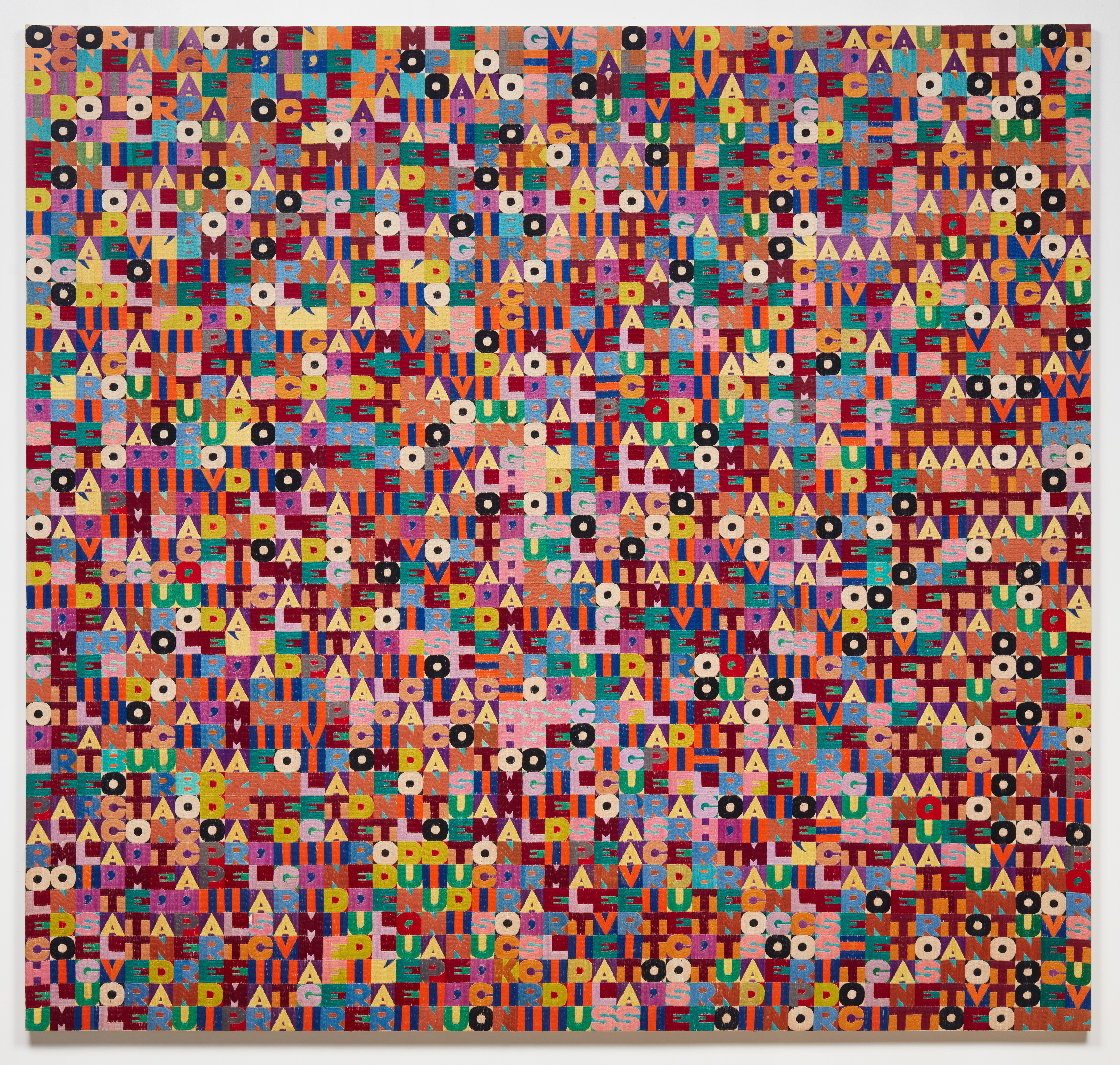 Conceived as a constellation that invites viewers to inhabit the space between idea and form, order and disorder, Alighiero Boetti reflects the artist’s enduring interest in duality, systems and process. From his early works rooted in simple materials and elementary structures as proposed by the Arte Povera group, to later collaborative and conceptually layered projects, the presentation foregrounds the internal coherence of a practice that consistently tested its own premises while embracing chance, repetition and shared authorship as generative forces.